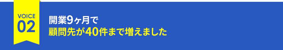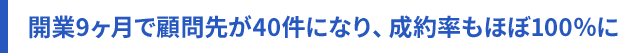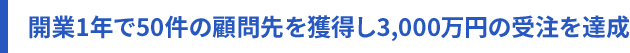 養成講座を受講し、学んだことをそのまま面談で実践したところ、開業後4ヶ月で20件、9ヶ月で40件と順調に顧問先を増やし、開業1年で50件の新規顧問先を獲得できました。