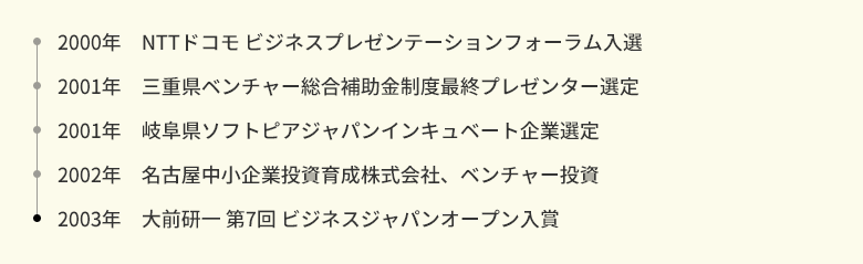 2年間で20件以上のビジネスモデル特許を申請。国内・海外で6件のビジネスモデル特許を取得。経済産業省の補助金申請者を地元銀行、信用金庫と連携して支援獲得・支援補助金累計額2億円超(チーム)