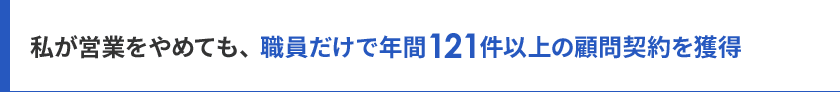 さらに事務所の職員にもその方法を教えてみたところ、職員だけで50件の顧問契約を獲得。さらに翌年には121件の契約を獲得しました。